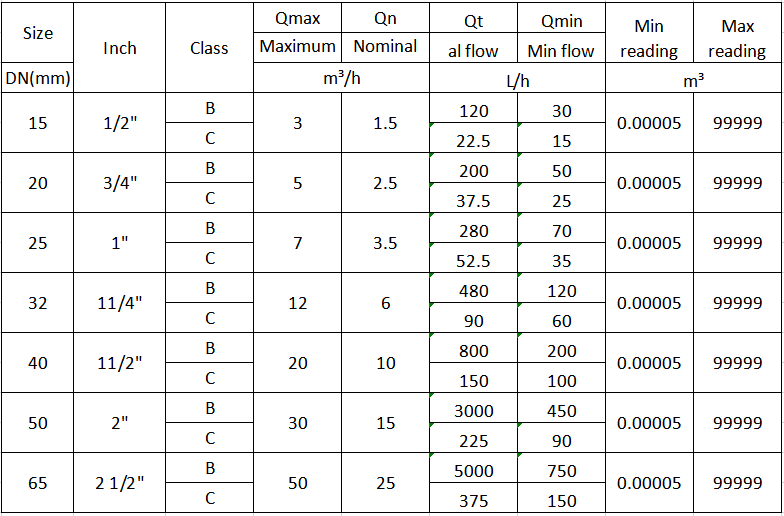 * The measurement accuracy reaches ISO 4064 Class C or R160.